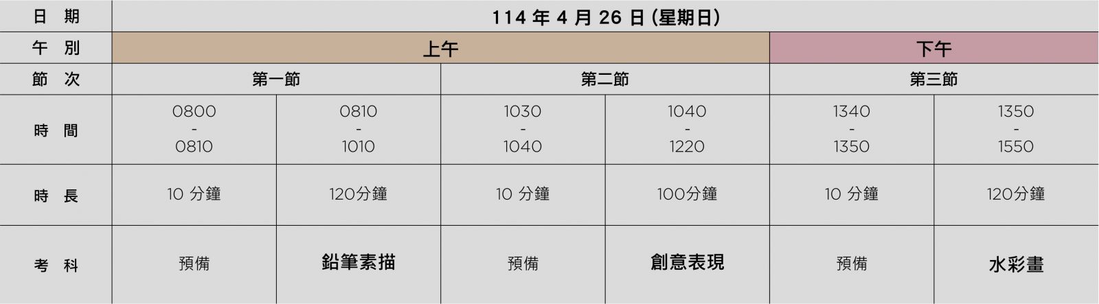114學年度 國中美術班術科考試